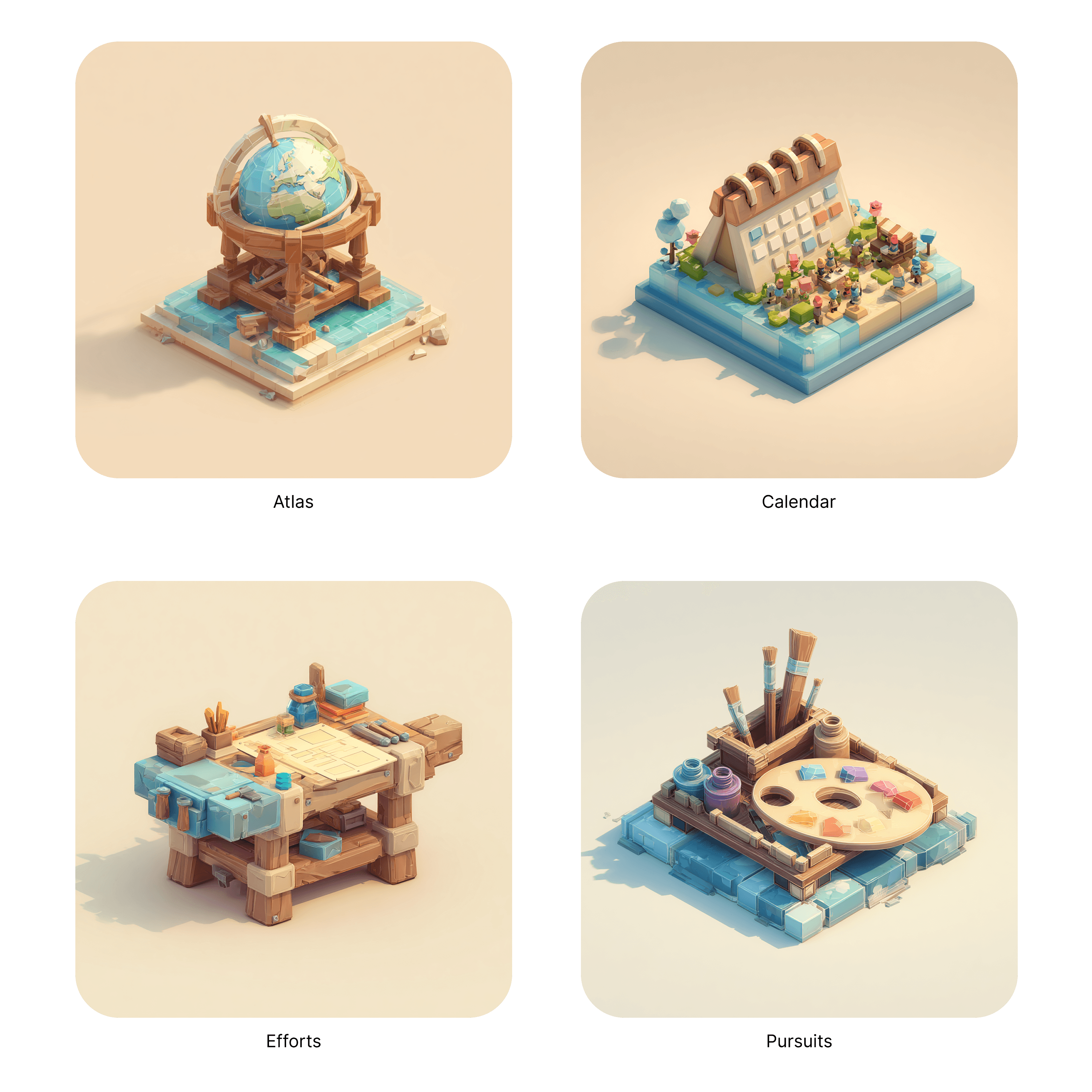 Atlas holds the knowledge that feeds decisions in Efforts. Calendar gives the time context that keeps Efforts on track. Pursuits holds everything that makes life worth living outside of work and learning. Take any one space away and the others start bleeding into each other.