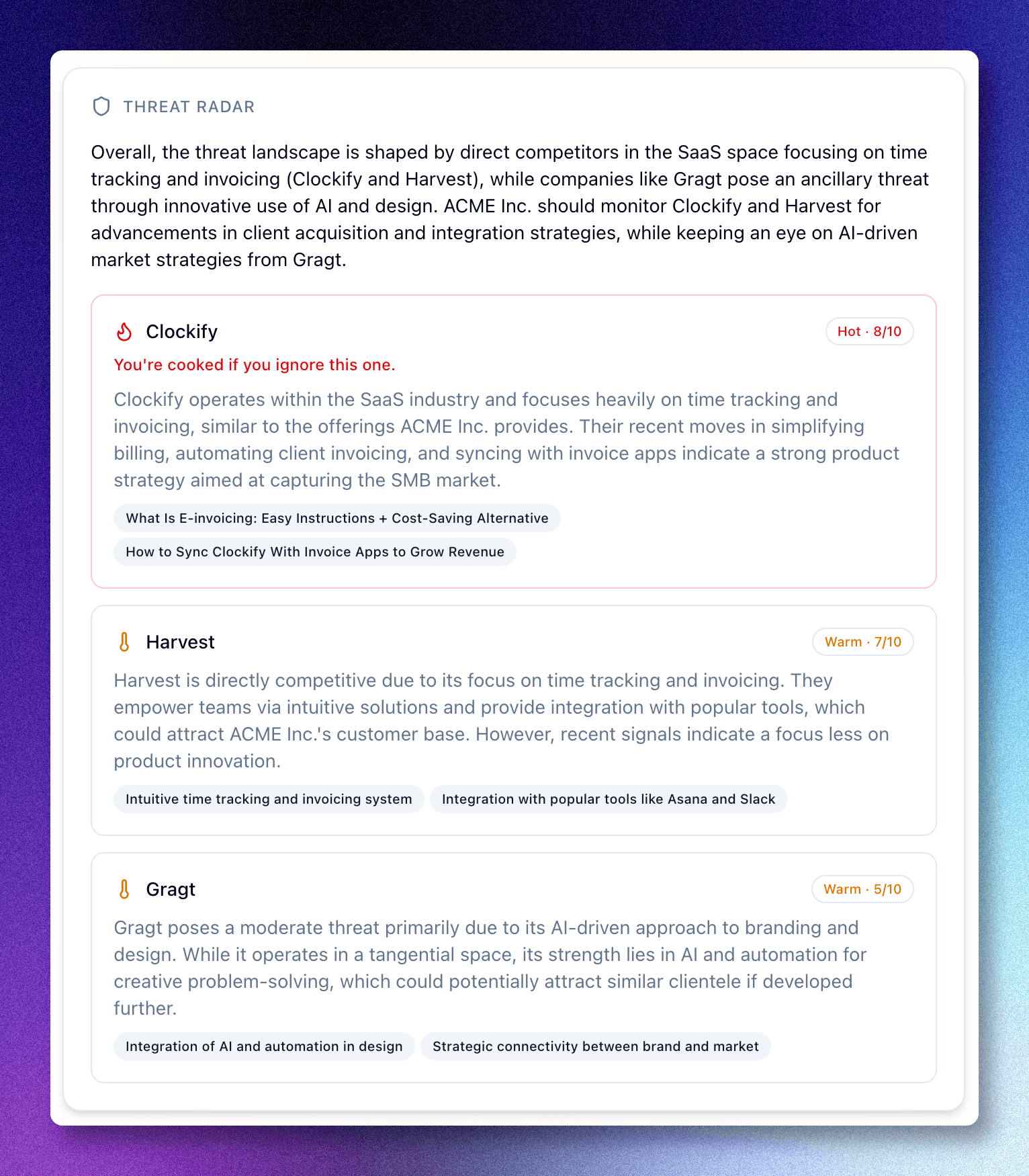 All solid ideas. Some of them might still get built. But we landed on competitive intelligence.
