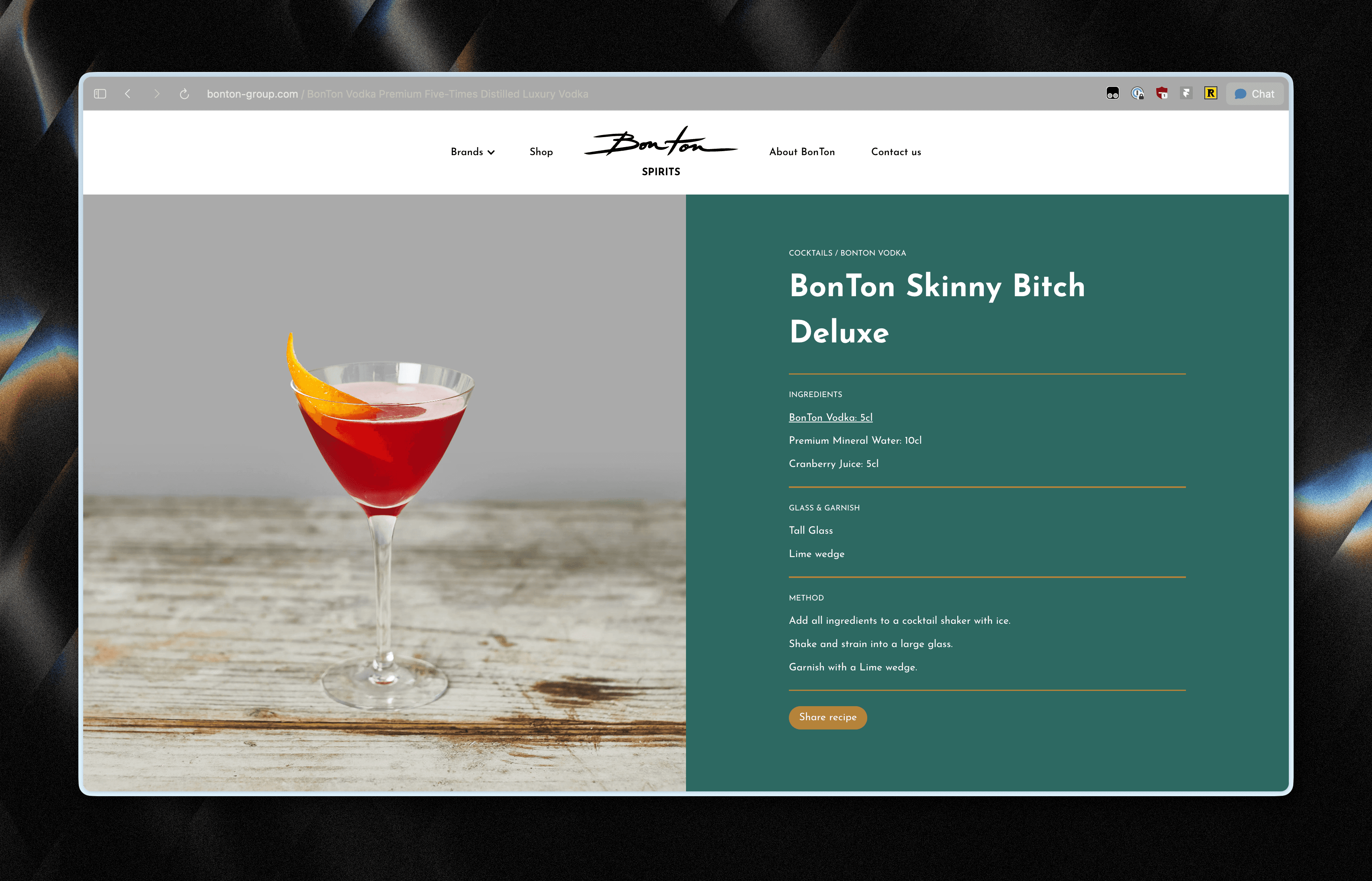 Signature cocktail on the brand site.