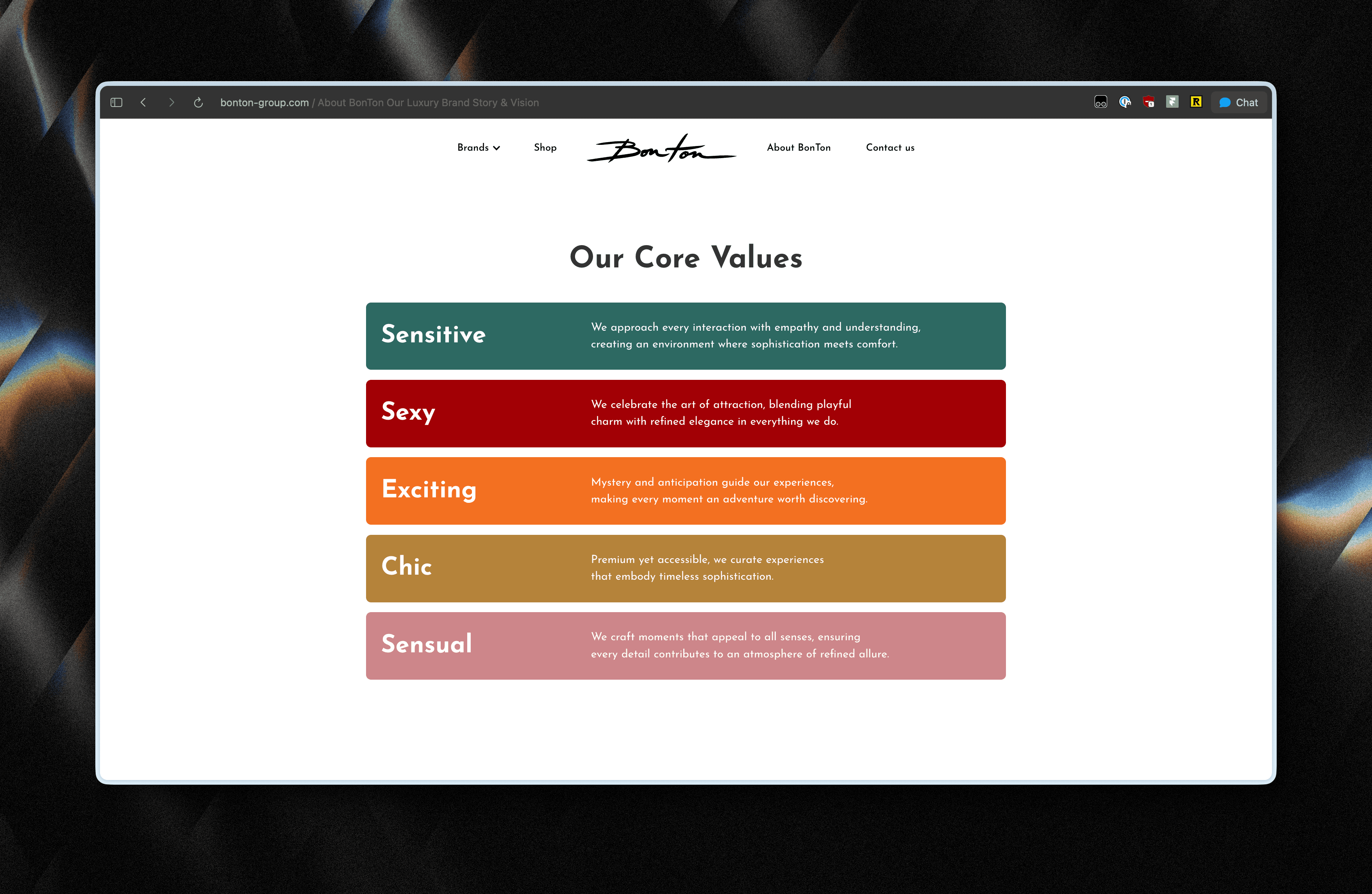 Core values on the brand page.