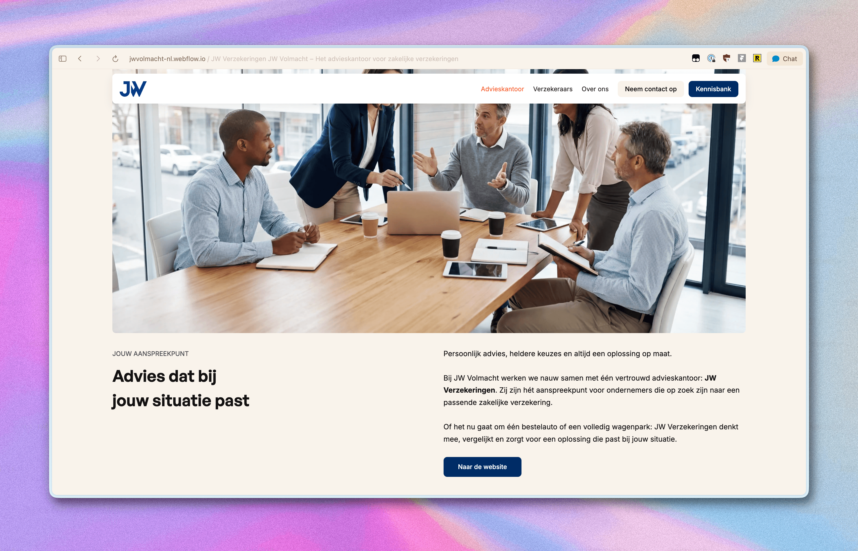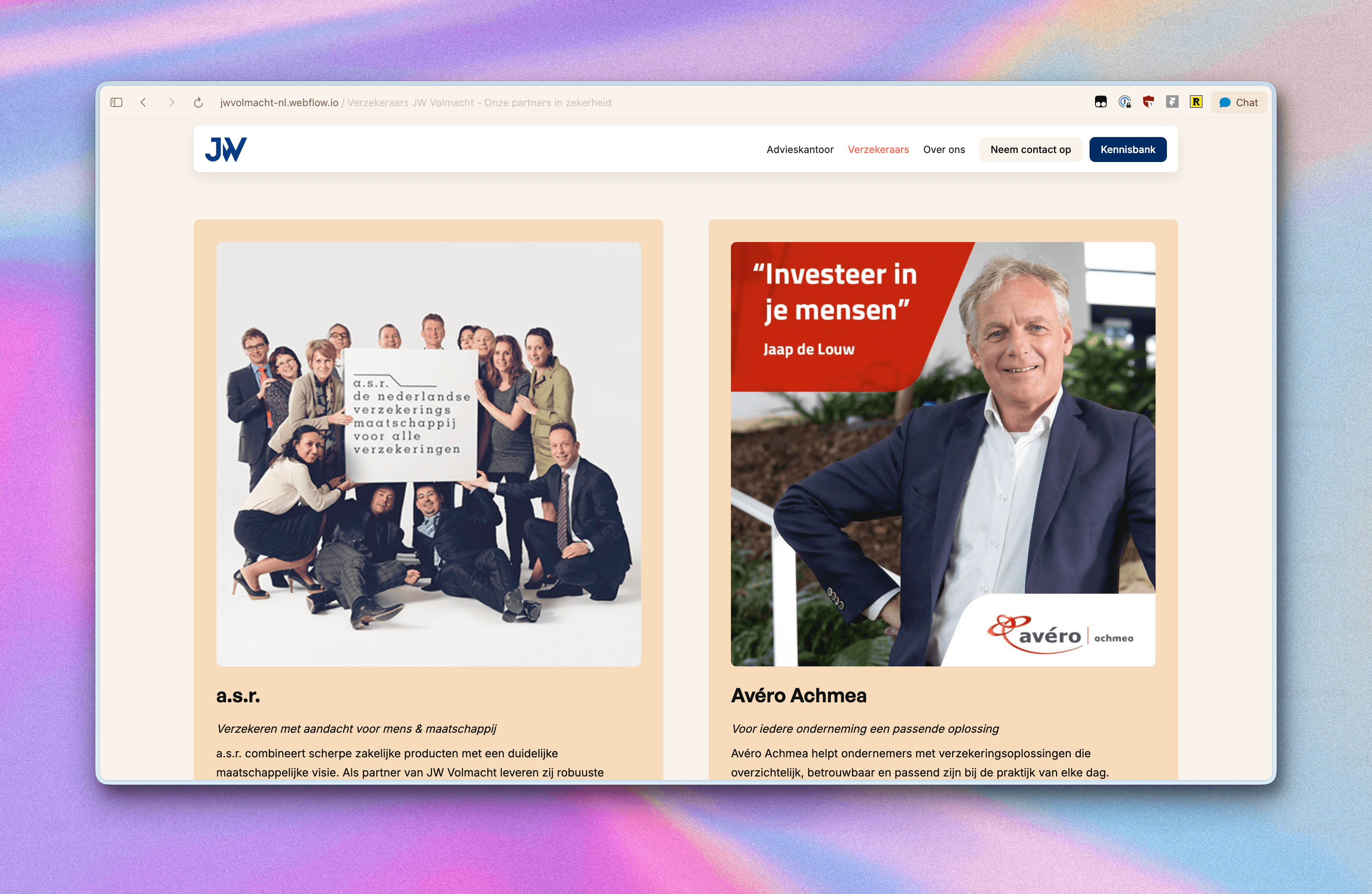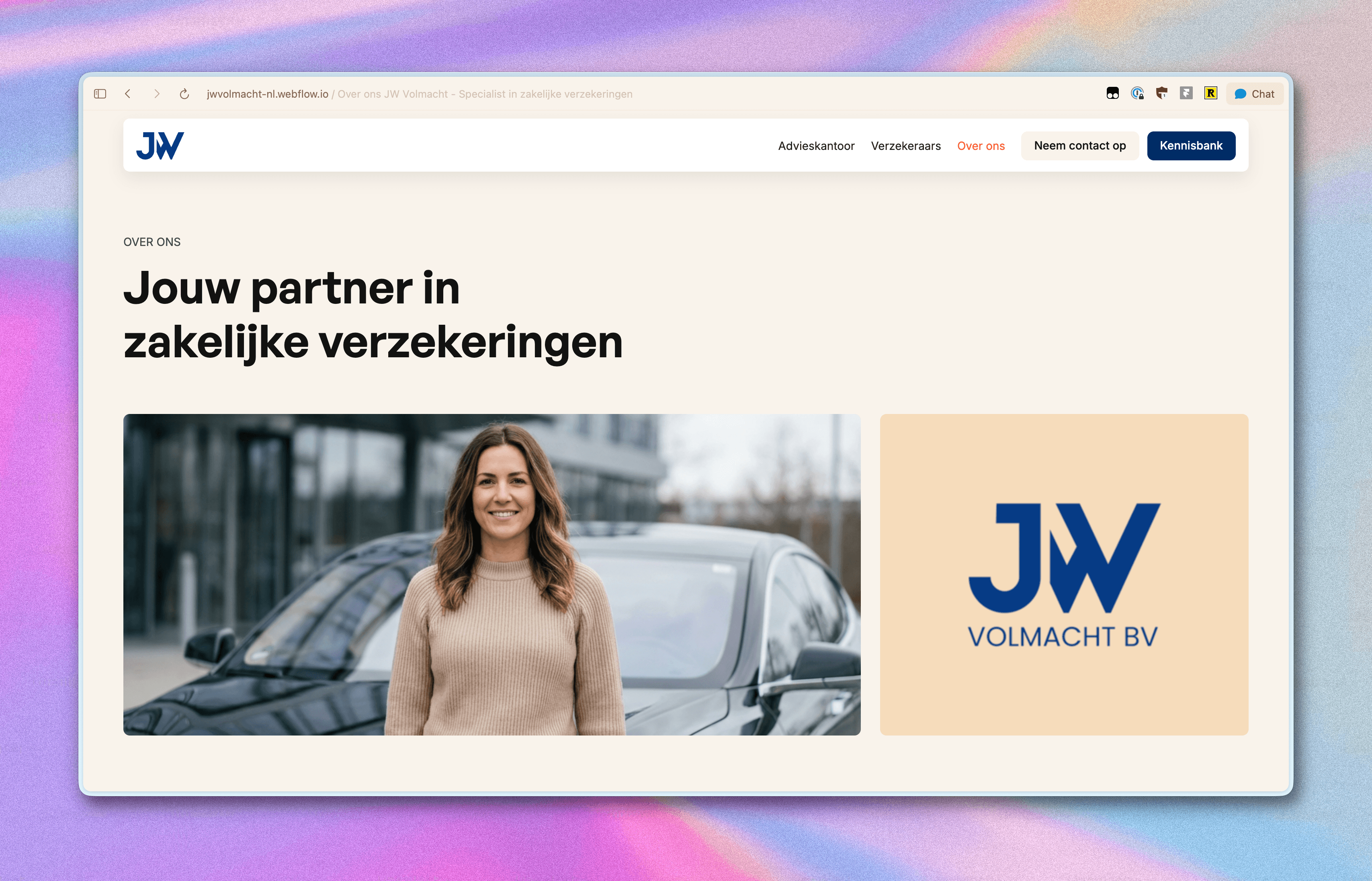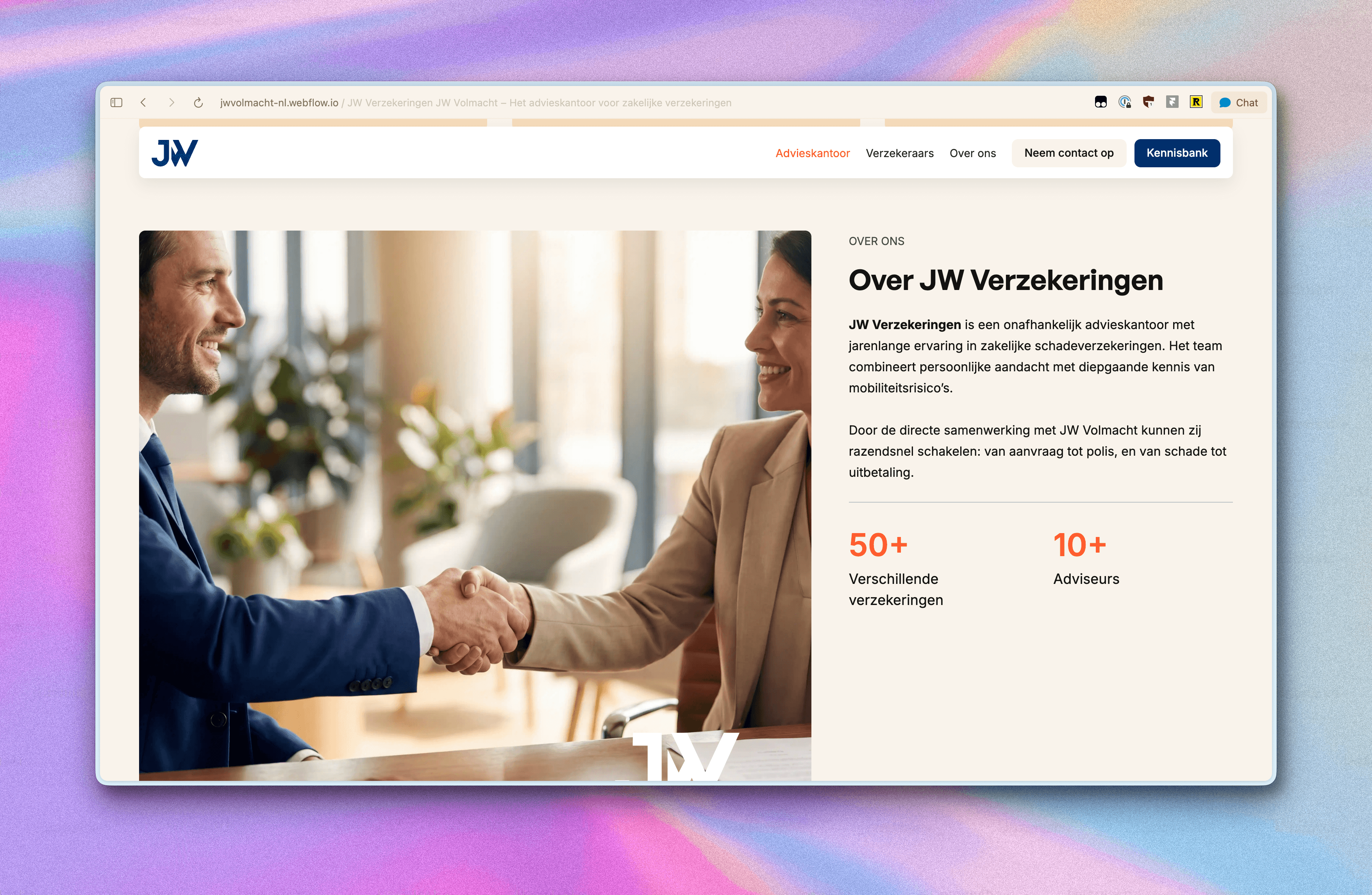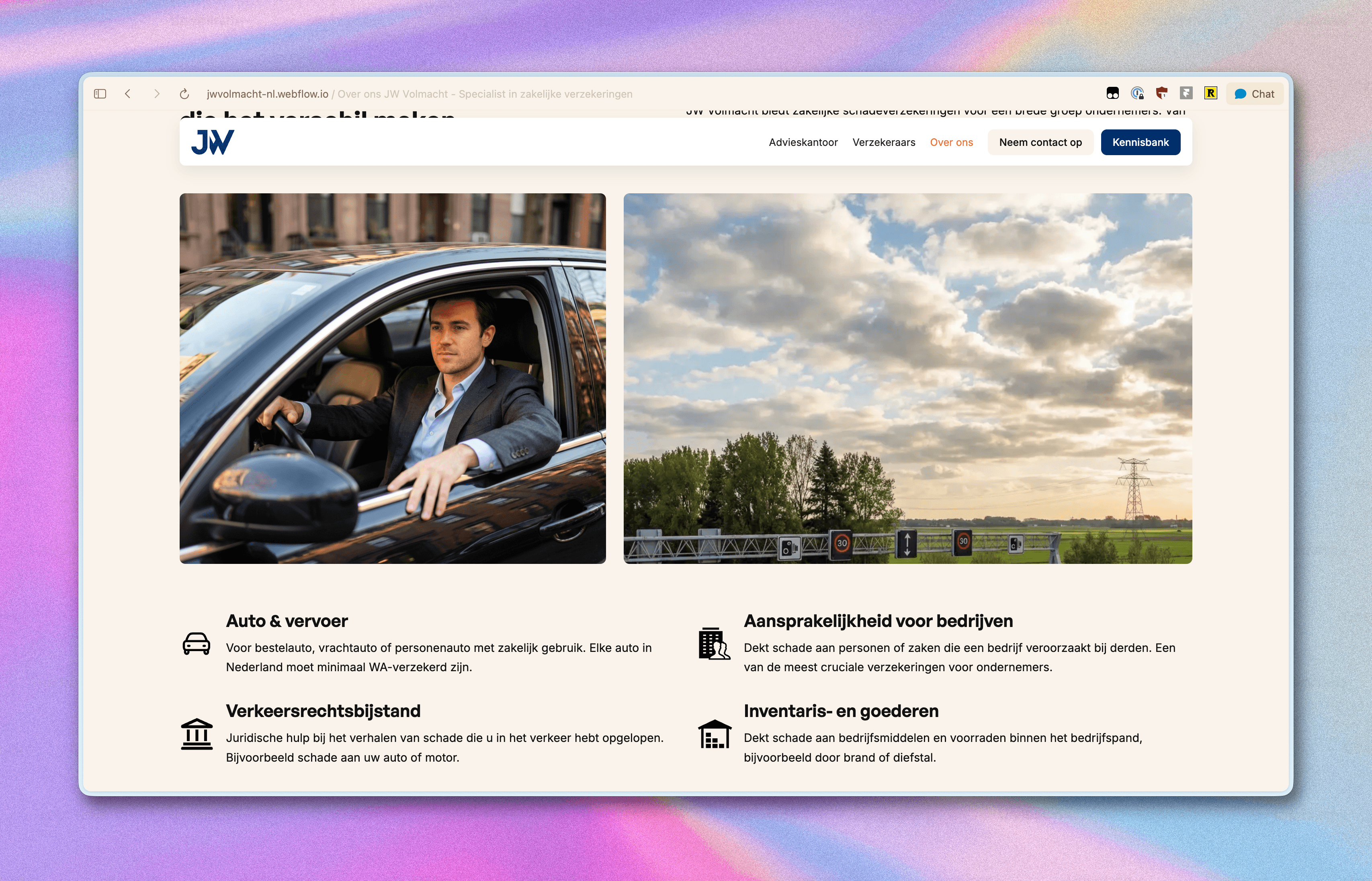 JW Volmacht is an insurance company that already had a Webflow site up and running. They asked me to take a look and suggest a few improvements. That turned into something bigger.